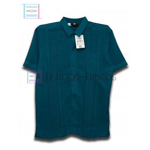 Guayabera de Lino Seda Manga Corta Talla 38 Color Petróleo