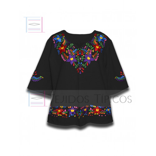 Blusa Colorín de Algodón Color Negro, Talla Chica