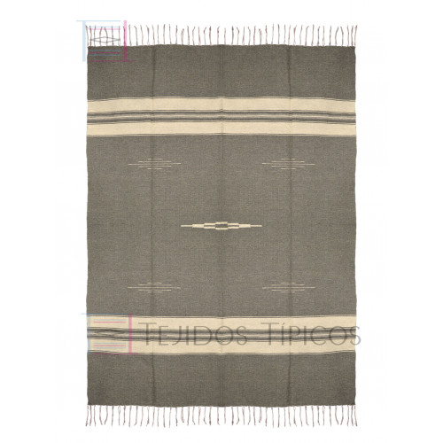 Sarape Extra de Algodón Tamaño 1.65 x 2.50 m Diamante Fondo Gris Oscuro Sombrea Beige y Gris