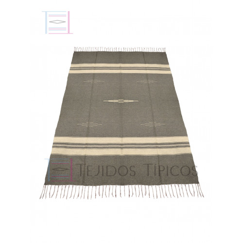 Sarape Saltillo de Lana Sencillo  En Fondo Color Gris y Combinado con lana Natural. Ideal Para Poner sobre la cama, en el sofá o como decoración en casa. Sus Medidas son 1.65 x 2.20 (tamaño único). Producto 100% Artesanal Elaborado a Mano en Telares Manuales. Producto Exclusivo