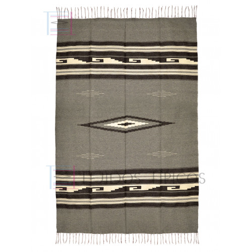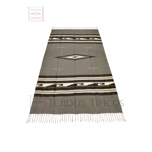 Sarape Saltillo de Lana Diamante y Greca En Fondo Color Gris Y Combinado Con Lana Natural. Ideal Para Poner sobre la cama, en el sofá o como decoración en casa. Sus Medidas son 1.65 x 2.20 (tamaño único). Producto 100% Artesanal Elaborado a Mano en Telares Manuales. Producto Exclusivo