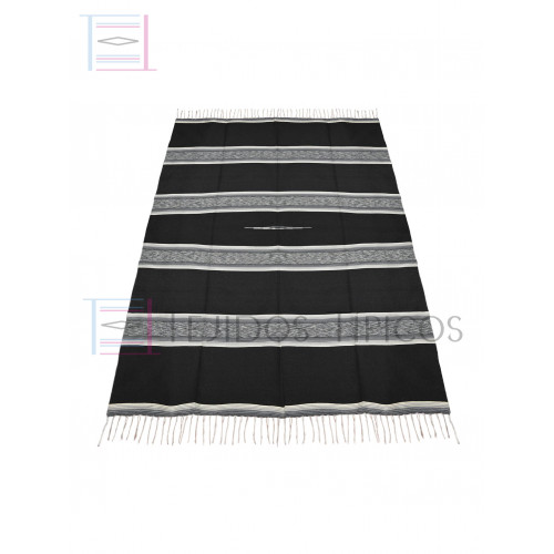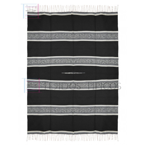 Saltillo Fino, Algodón, Jaspeado, Tamaño Matrimonial, Sombra Gris, Hueso y Gris Oscuro, Fondo Negro