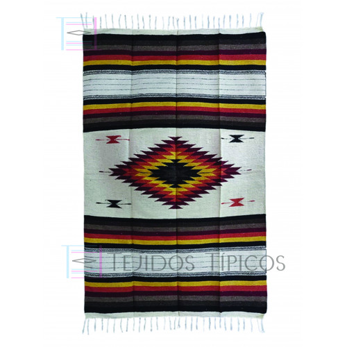 Sarape Mediano de Algodón Tamaño 1.25 x 2.00 m Diseño Diamante Fondo Hueso Sombra Cafés