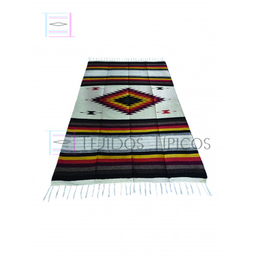 Sarape tejido a mano. Fabricado de algodón, ideal para decorar el hogar, se puede utilizar en la cama, en el sofá, en el piso. Existen gran variedad de diseños y colores