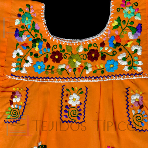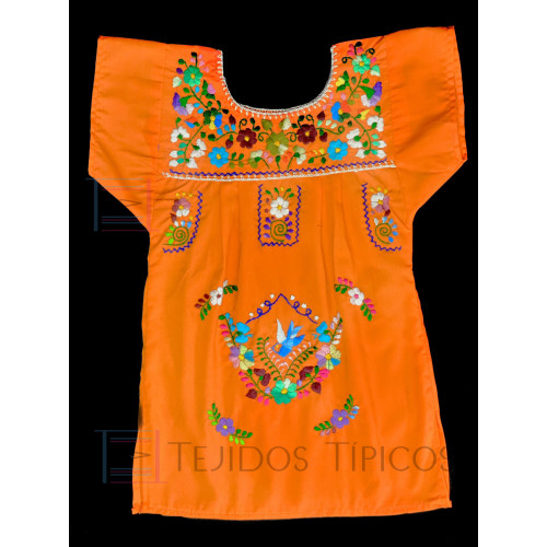 Vestido Bordado Multicolor niña Color Naranja,Talla 1