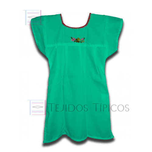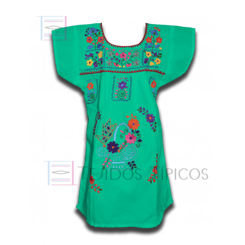 Vestido Bordado multicolor color verde agua, talla 0, la medida es 27 cm ancho y largo 42 cm , los bordados siempre cambian porque son bordados a mano, los colores del material pueden cambiar, la talla puede variar.