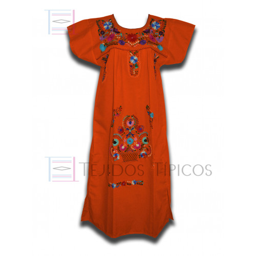 Vestido Bordado Multicolor Color naranja, talla standard,