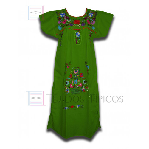 Vestido Bordado Multicolor Color Verde Bandera, talla Standard