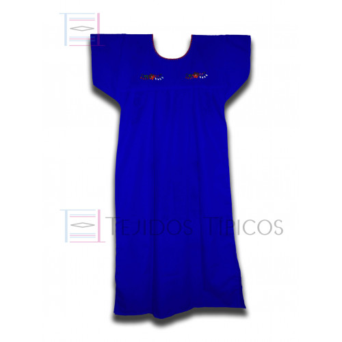 Vestido Bordado Multicolor Color azul rey, talla standard, medida 49 cm de ancho, 100 cm largo, bordado a mano, el bordado, la tela, la talla puede variar, lavar a mano o maquina con agua fria, no usar secadora