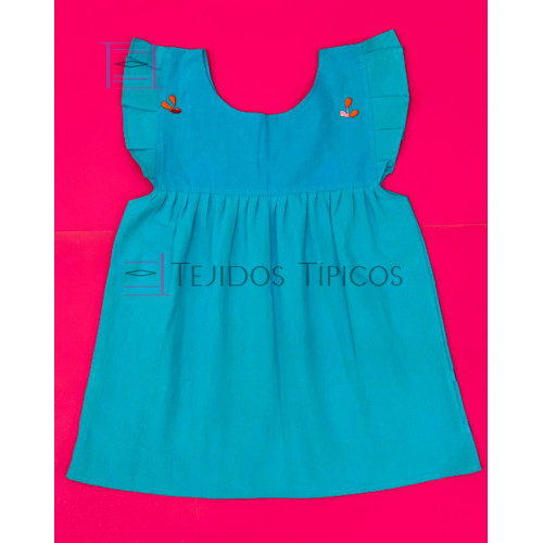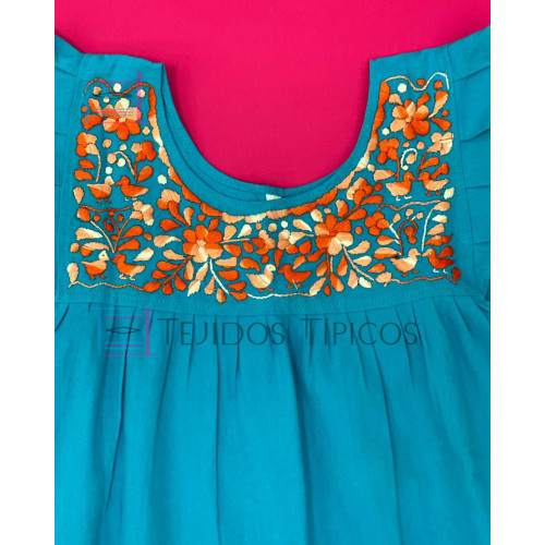 Vestido Bordado de Niña Modelo Julia , Color Azul Turquesa,Talla 2